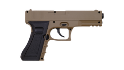 Niksan Defense NKS CP17, wiatrówka CO2 na kulki BBs, wierna replika pistoletu Glock 17. Niezawodna, w pełni polimerowa konstrukcja idealna do rekreacyjnego strzelania. Wersja w kolorze piaskowym.