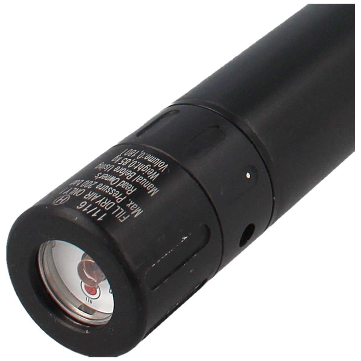 Cartridge - made of steel, replaceable cylinder with a capacity of 180 cc. A fully charged container allows you to fire 60-80 effective shots depending on the caliber of the airgun (data for the FAC version). Built-in pressure gauge allows you to control the pressure in the tank, and thus the degree of its charge. The rotating cover protects the cartridge inlet against damage. 200 bar maximum pressure. Cartridge weight filled at 150 bar pressure, approximately 1055 g, empty cartridge weight 850 g.
