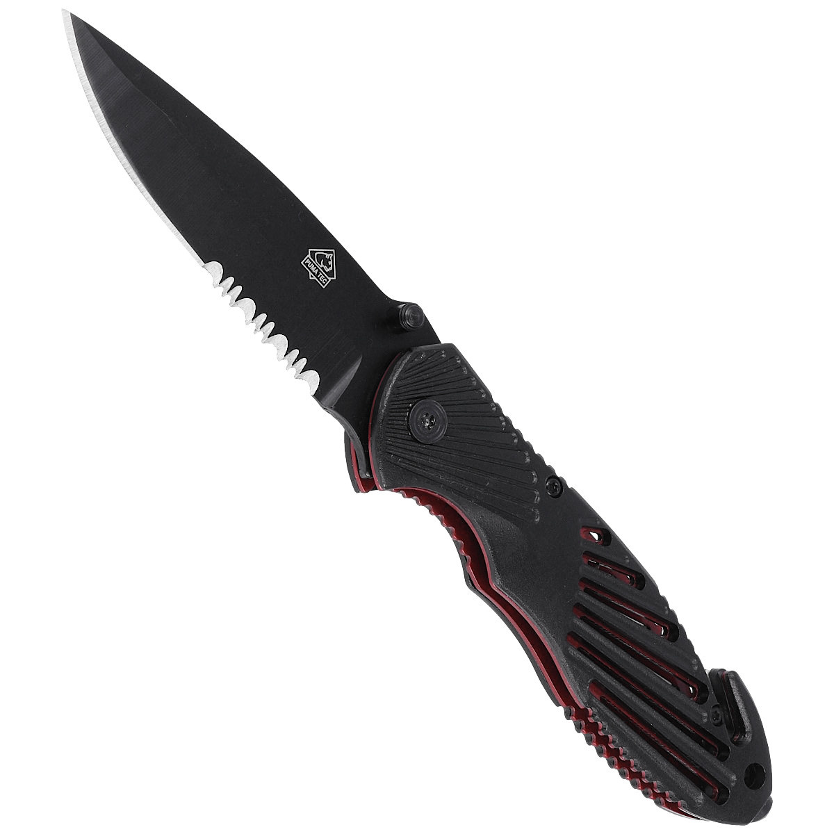 Puma Rescue Folder is a one-hand opened, rescue knife form Puma TEC serie. It is made by German company- Puma Solingen. The type of blade is Droppoint. Black blade made of stainless steel is serrated in some parts of it. It's also good for left-handed person. There is a posibility to fasten the knife to a belt.