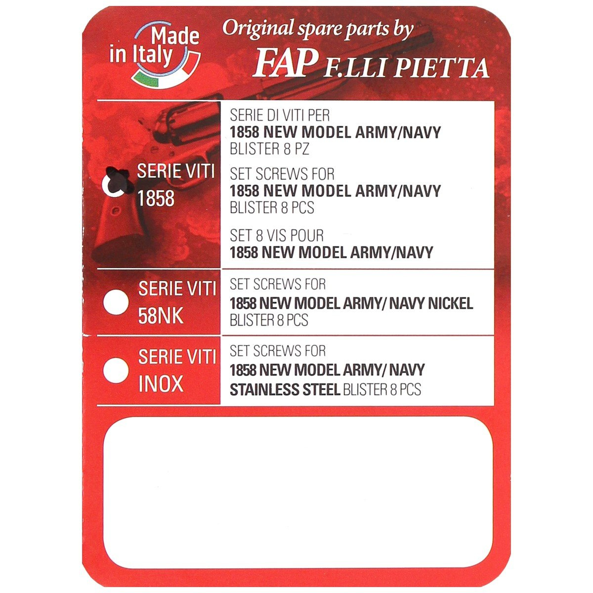 SERIES VITI 1858, repair kit 8 pcs of bolts for Black Powder Revolvers 1858 Remington New Model Army .44 inch / Navy .36 inch by Pietta Arms.