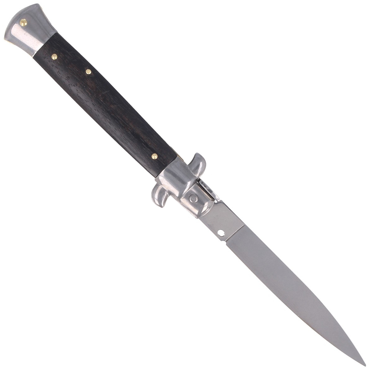 • Frank Beltrame Stiletto Ebony 23 cm - a classic spring knife handmade in Italy. Handle made of ebony wood, 420 stainless steel, traditional push-button mechanism. A combination of style, precision and craftsmanship.
