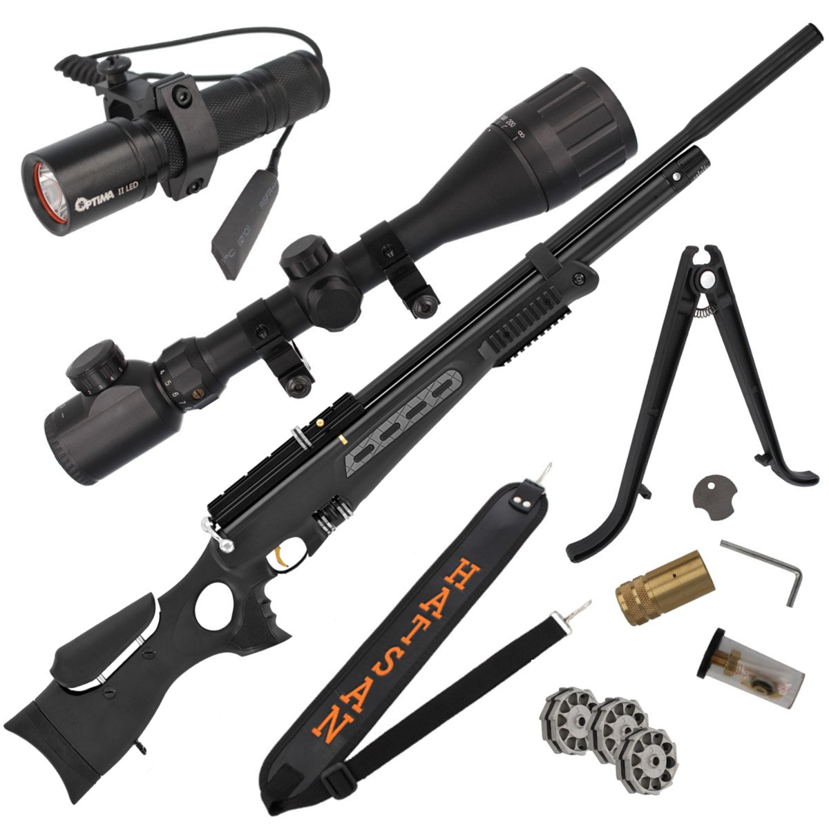 Now included (model ELITE): spotting scope Optima, bipod, tactical flashlight Optima II LED, carrying strap and additional magazines. The set allows you to buy a windcheater and the necessary shooting accessories at an attractive price. The rifle in this configuration will allow you to rediscover the pleasure of air rifle shooting.
