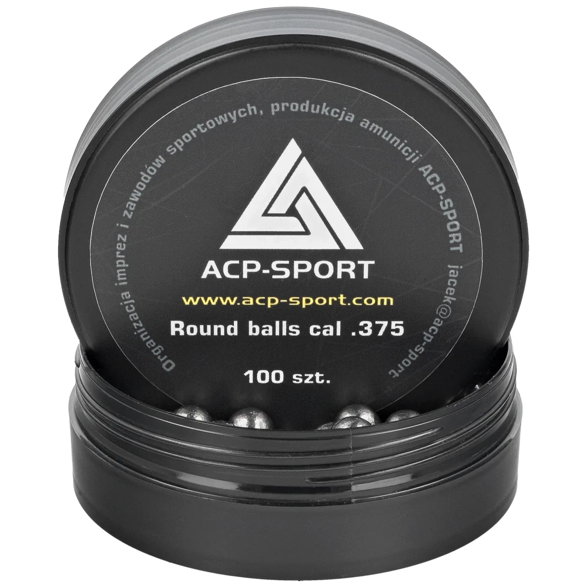 Nadkalibrowe polerowane kule ołowiane (80 gr) firmy ACP-Sport w kalibrze 375 (9.52 mm) do broni czarnoprochowej. Wykonane z czystego ołowiu bez udziału ołowionośnych materiałów wtórnych. Dzięki poddaniu kul procesowi obtaczania, pociski nie posiadają one nadlewek, niedolewek, szwów i innych wad spotykanych w produktach niższej jakości. Przeznaczone do strzelania z kapiszonowych rewolwerów m.in. Remington, Colt, pistoletów oraz karabinów czarnoprochowych w kalibrze .36. Opakowanie zawiera 100 szt.