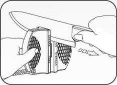 2. to sharpen, pull toward you 3-4 times, lightly pressing the cutting edge between the black carbide blades of the carbides.