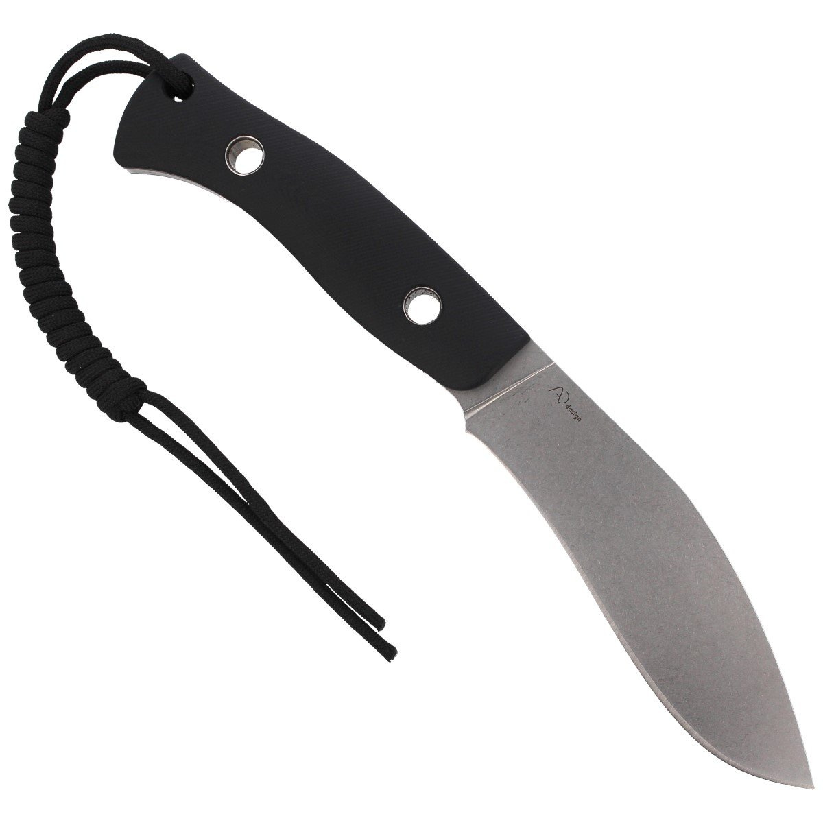 Handle - profiled claddings made of G-10 Black. 3D machined and smooth polished to an attractive finish for a firm grip. The grip covers are attached to the mandrel with strong cylindrical rivets that reduce weight and are used to pull a security cable, and in an emergency, they allow you to attach the knife to a pole to create an improvised spear. Lanyard hole, rope hole with intertwined rope secure.