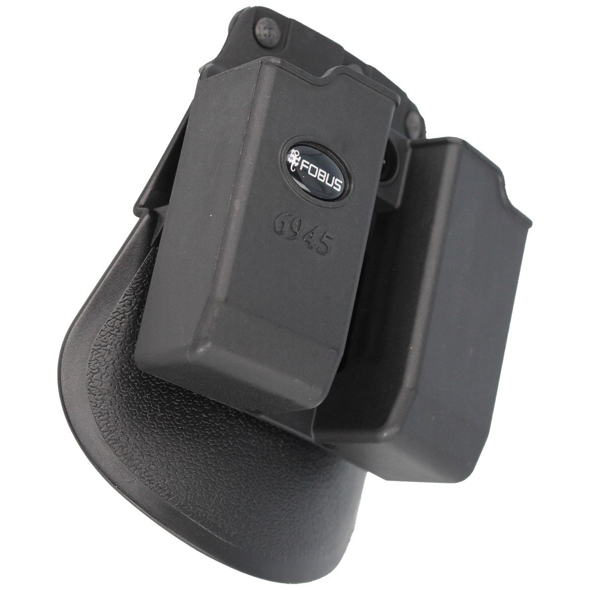 - 6945 Paddle pouch Fobus open type for 2 double-row 45 cal. Pistol magazines for a pistol type S&W, Springfield, H&K, Walther. P fin attachment for a belt width up to 45mm. Designed to fit the body as closely as possible.