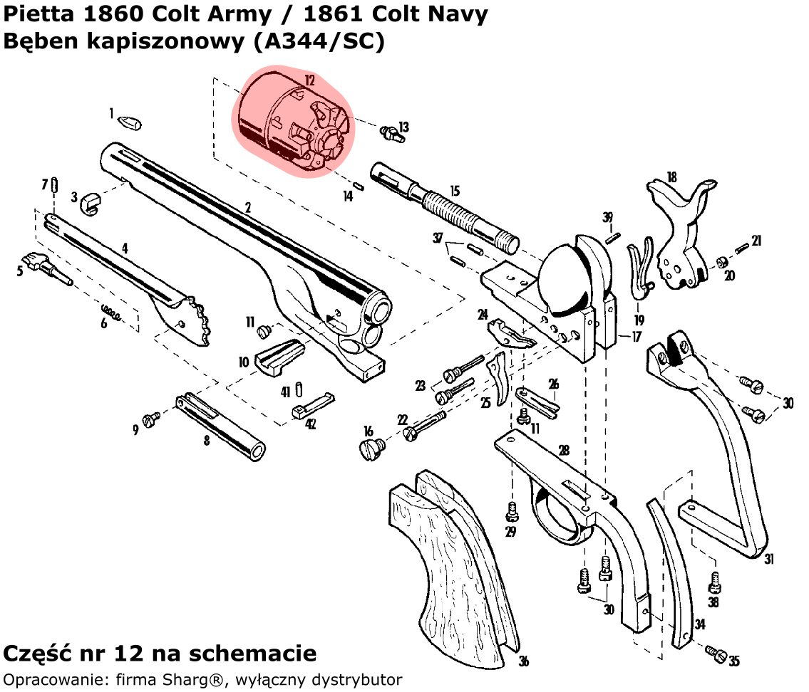 - Schematic of the revolver: 1851 Colt Reb Nord Navy