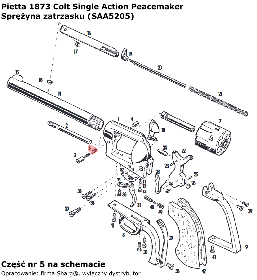 - SAA5205 (service) spring latch from Pietta. Designed for 1873 Single Action Steel revolvers and 1873 Single Action Stainless, the most famous Samuel Colt revolvers also known as Peacemaker / Cattleman.