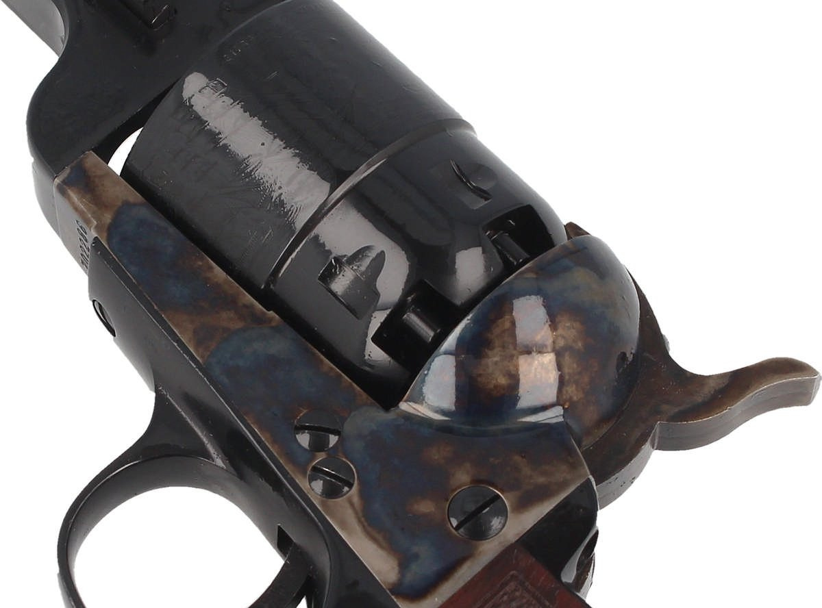 • 1851 Colt Navy Yank Snubnose .44 with an ergonomic Thunderer grip and Checkered Grip pads. The best revolver for quick drawing and shooting at short distances: short barrel, handy Thunderer handle.