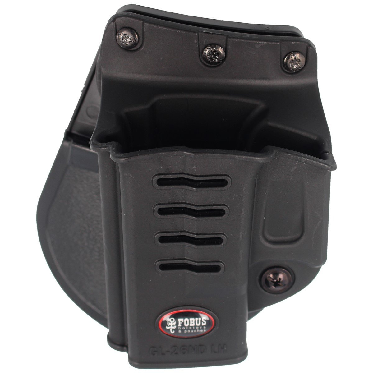 - GL-26 ND RT (Rotating Paddle) Fobus open holster, left. For Glock 26, 27 pistol. ND / Evolution-2 new generation with an additional screw at the bail to adjust the holster pressure. It affects the force with which the weapon is held in the holster or is d