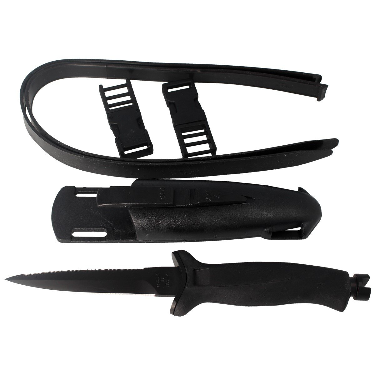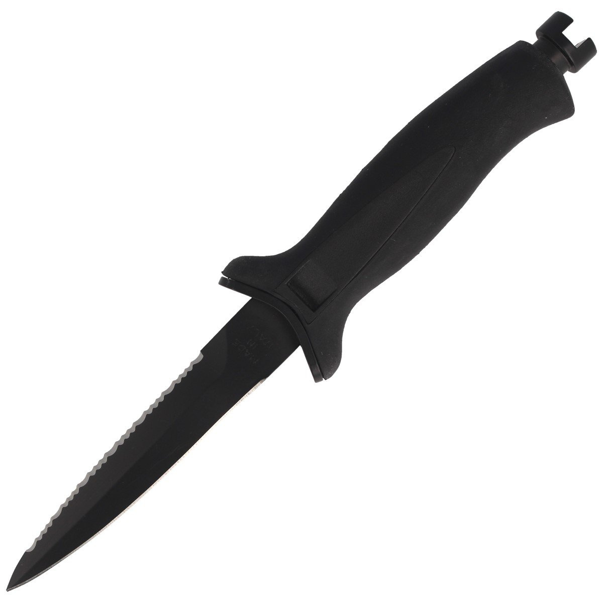 AQUATYS 11 2, a full tang construction diver's knife with a matte black coated blade. Manufactured by the Italian company MAC Coltellerie. An ideal tool for use during diving expeditions, underwater hunting and shore work.