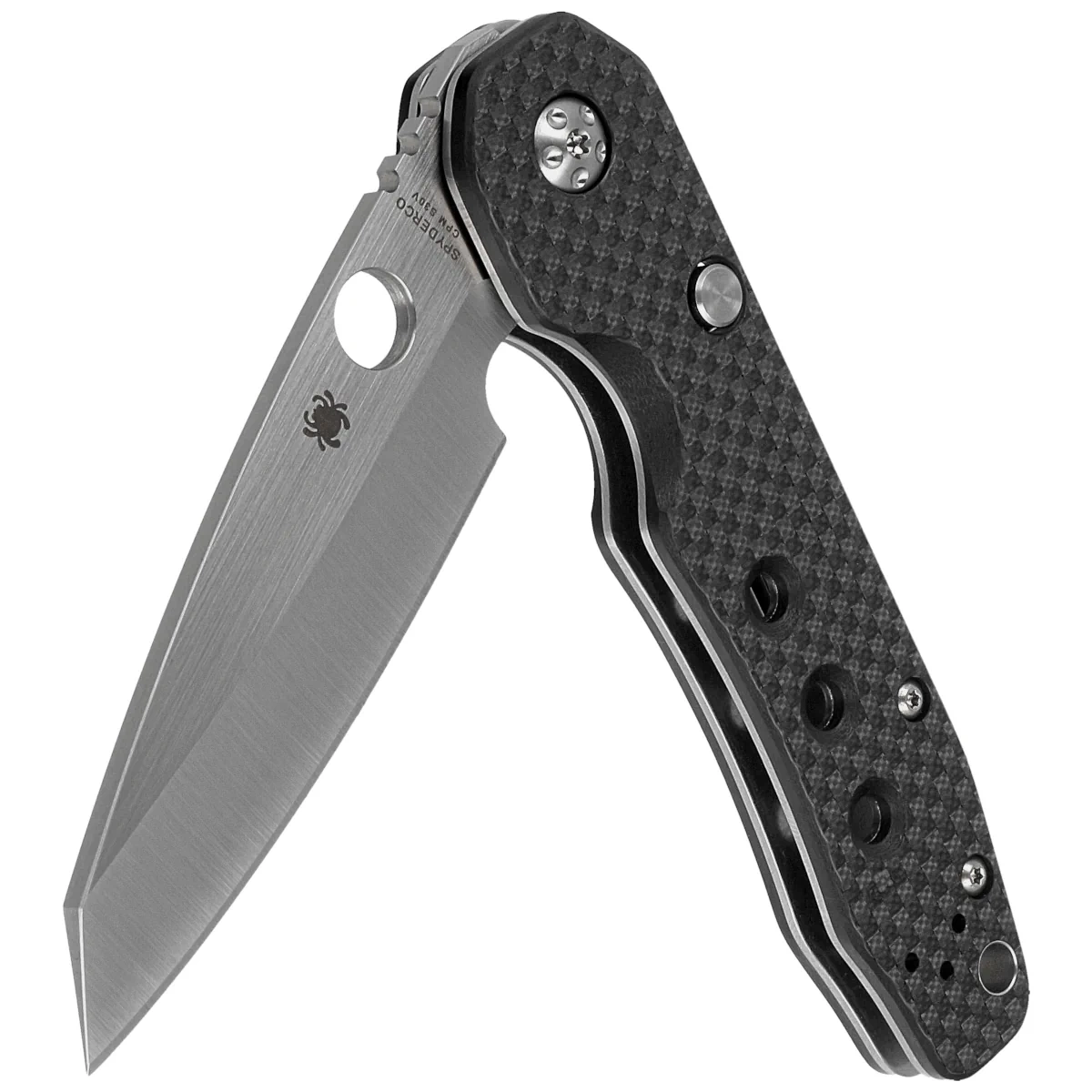 Smock Carbon Fiber / G-10, the design of the award-winning industrial designer Kevin Smock, who drew attention with his visionary, hand-made knives. The folder combines the improved Compression Lock mechanism with two different ways to open the blade with one hand, the Spyderco Round Hole gap and the elegant flipper (flipper opener).