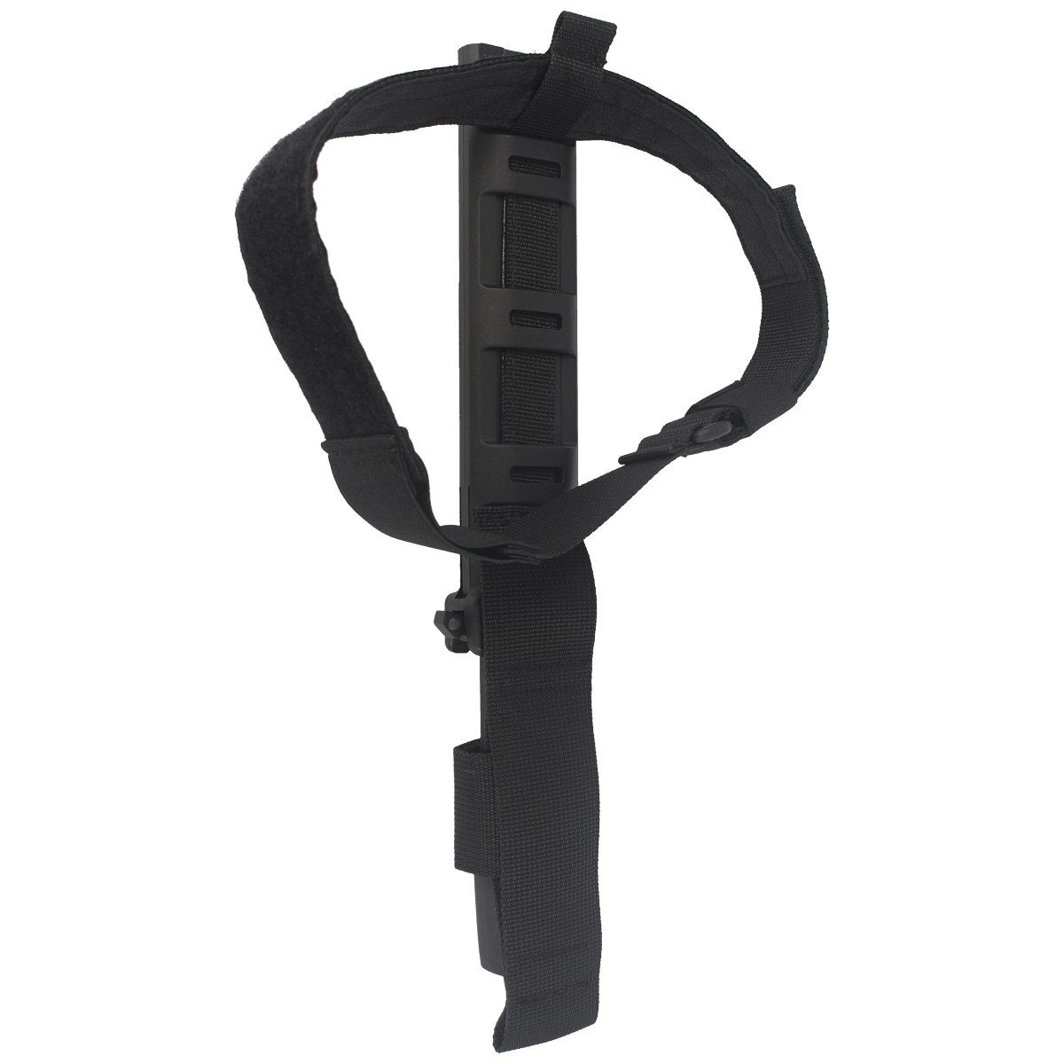 Sheath - lightweight, injection-molded shell made of impact-resistant reinforced Nylon. The minimalist holster protects the knife from falling out (snap with trigger lever), and the vibration-absorbing dampening system prevents the blade from rattling during movement. The symmetrical design allows the holster's handling to be adjusted for both right- and left-handed users by moving the trigger lever to the other side of the sheath. The universal openwork shell design open at the bottom reduces the weight of the kit and prevents water from collecting inside and reduces the weight of the kit. Reduced to a minimum nylon webbing allows the sheath to be quickly attached to the belt or under the webbing of the M.O.L.L.E. (Modular Lightweight Load-carrying Equipment) system. A Velcro-fastened lower sheath with a thigh band with rubber reinforcement prevents the sheath from moving on the thigh.
