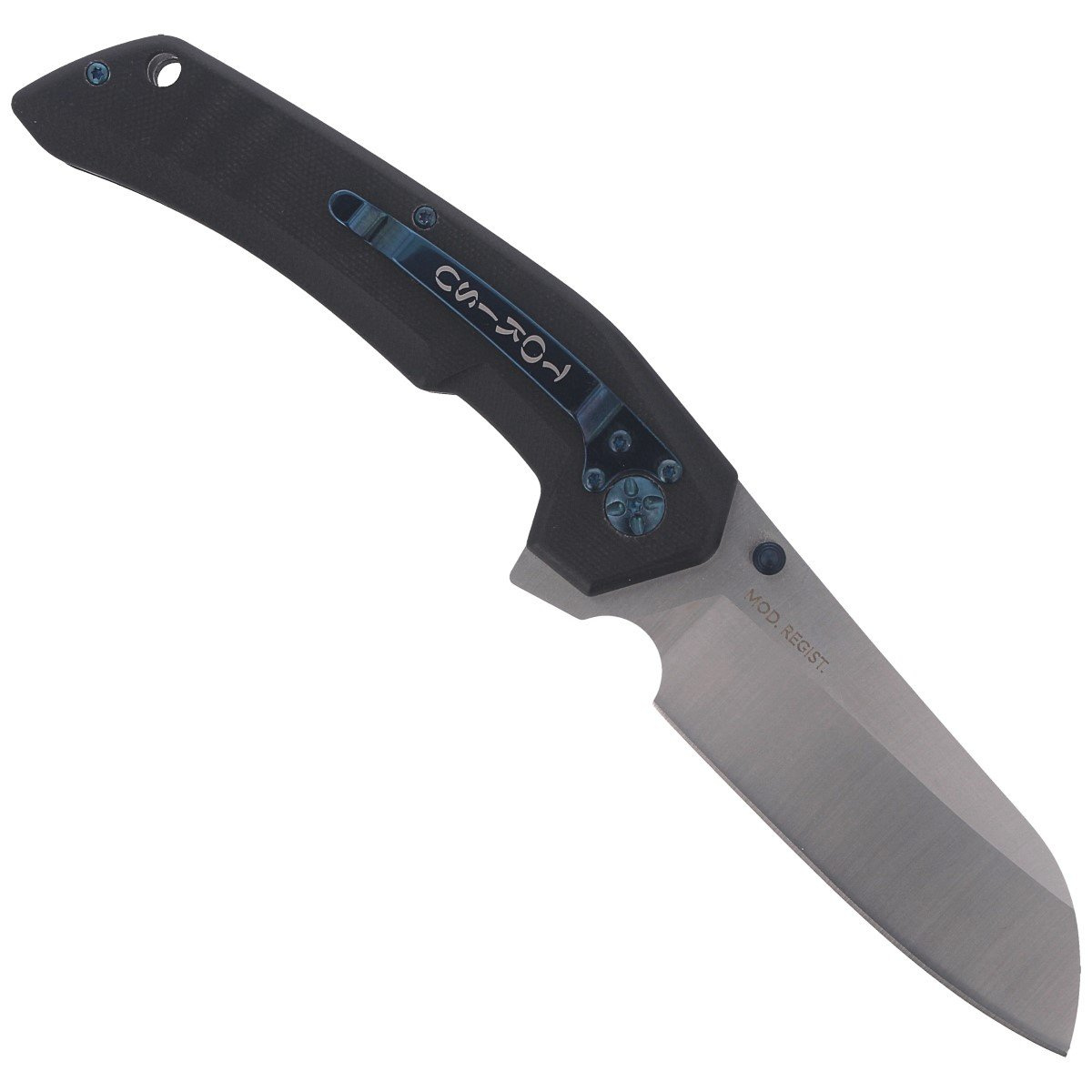 - Tactical Black G10 / Carbon Fiber, Satin is an excellent E.D.C. knife with a sheepfoot blade. Made of good materials at an extremely attractive price, the folder features a 7Cr17MoV steel blade, clip and Liner Lock. A bestseller!