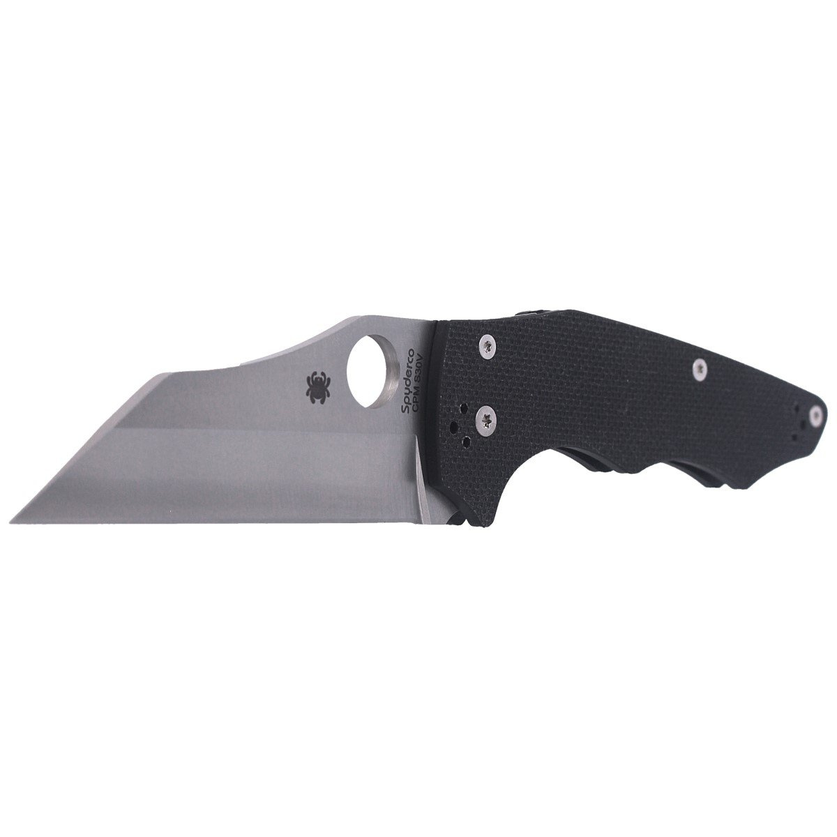 Blade - Wharncliffe profile, 3.7 mm thick. Plain blade has been ground with a concave grind (Hollow Grind). The straight concave cutting edge provides exceptional cutting performance, transferring power to the blade tip for improved scoring strength. The enlarged 14mm round SpyderHole cutout (Spyderco patent) allows easy opening of the blade with a glove as well as wet, sweaty hands.