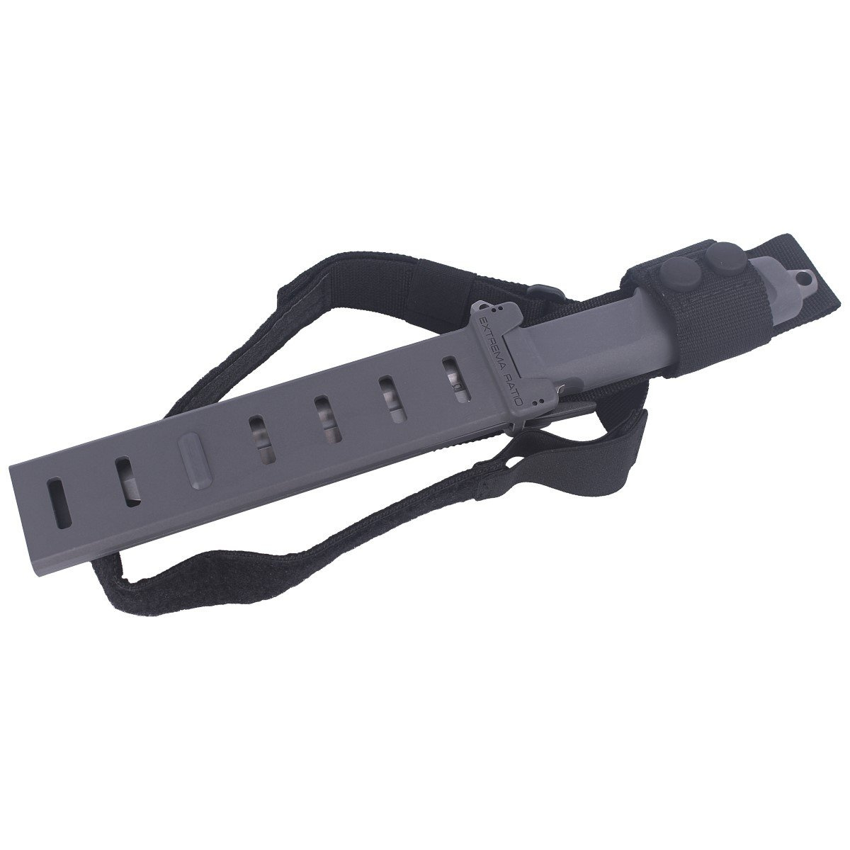 Contact Wolf Grey the first knife from the new production line developed by Extrema Ratio. A full-size, multi-functional assault knife. The goal was to create an easy-to-carry, reliable knife for use on the battlefield and for heavy field work, which also performs well during hunting as well as outdoor activities. Extremely rugged design with a massive 6.3mm blade measuring 162mm in length with blood-draining slots (armor grooves / drainage inlets) on both sides of the blade for lightweight construction. A typical tool for the professional.