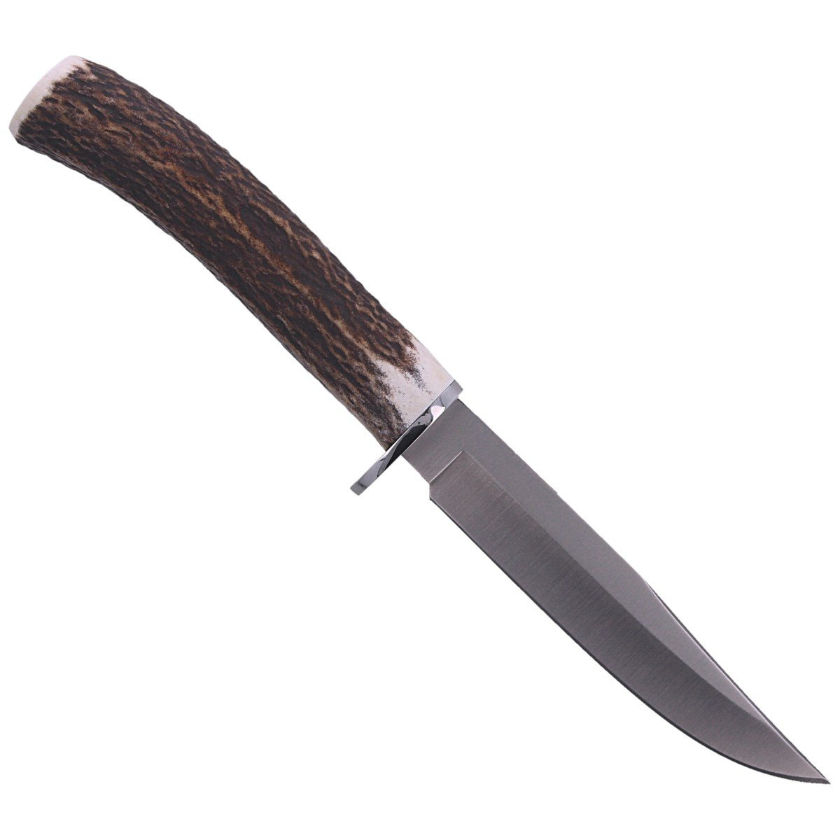 - GRED-12A classic hunting knife with a fixed blade. Head molybdenum-vanadium steel coated with a non-reflective Satin Finish coating. Handle natural deer antler, steel hilt. Leather case with embossed manufacturer's logo stitched on the edges with decorati