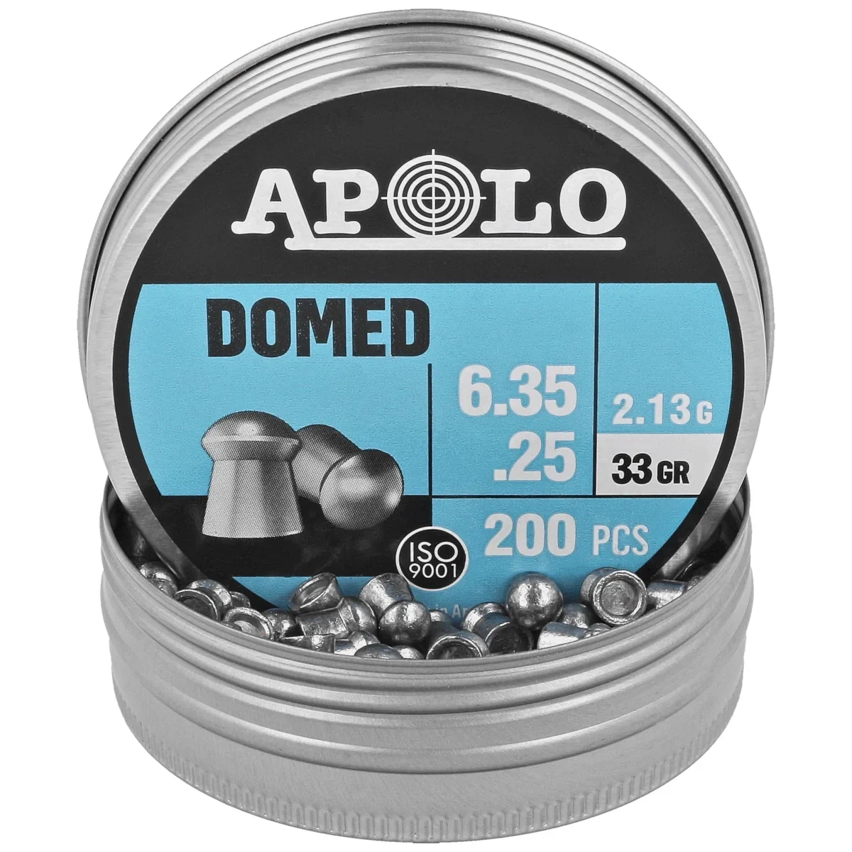- Domed .25 (33gr) precision pellets in 6,35mm caliber for long-distance shooting, featuring excellent aerodynamics (flat, stable trajectory) and energy retention. The rounded profile ensures high impact force and penetration. Pack of 200 pcs.