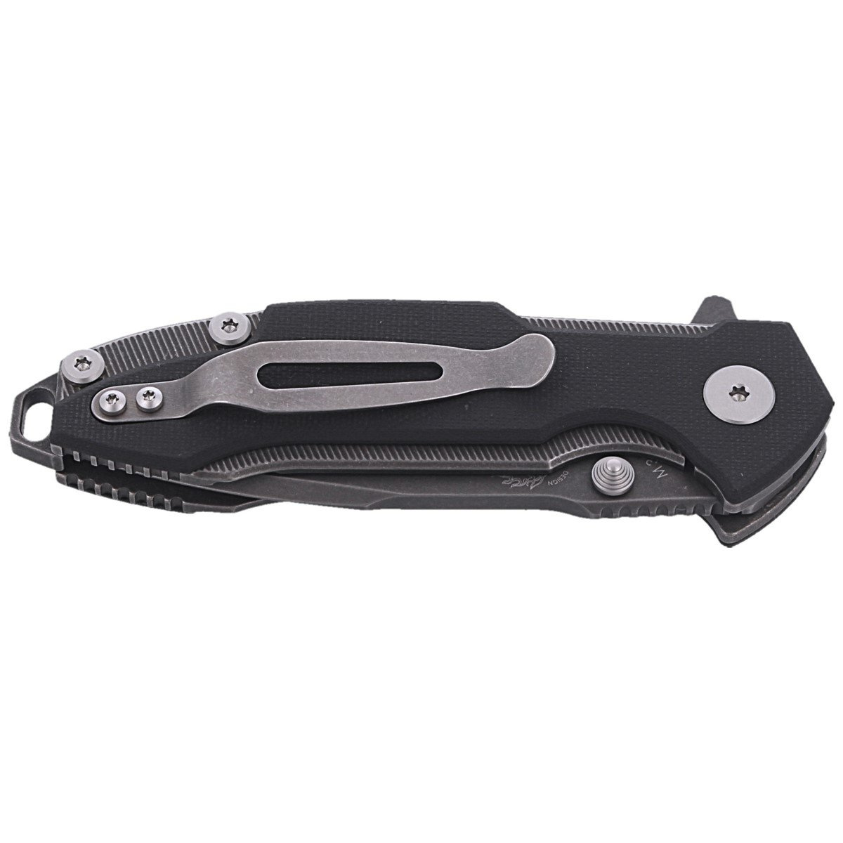 - Storm Black G-10, Dark Stone Washed a unique folder aimed at discerning buyers, combines tactical style with the finest materials. Design by knifemaker Rick Hinderer. Folder combines two different options of opening the head, ball bearing pivot, titanium