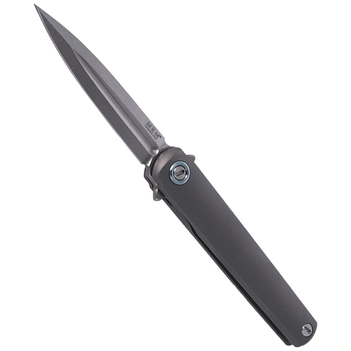 - Flame Dagger Titanium, Stonewashed - a slim EDC folder designed by Michael Zieba with a single-sided dagger blade in Böhler M390 steel, Ti6AI4V titanium handle, frame lock and deep carry clip. A perfect combination of classic and modern.