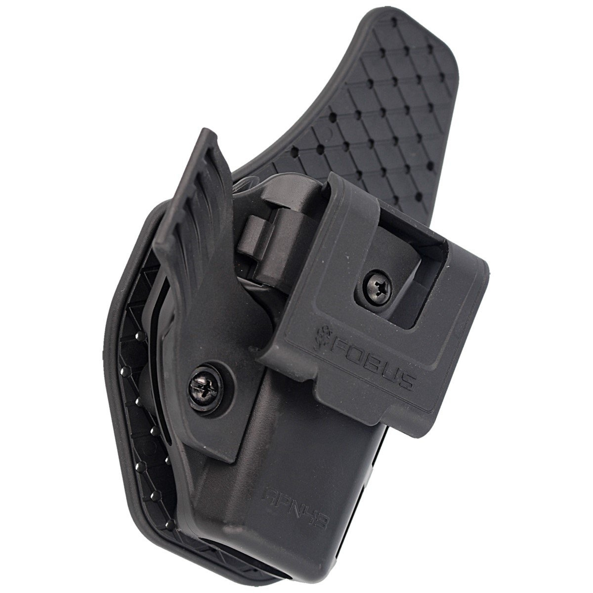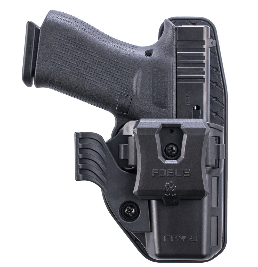 APN43 low-profile right / left open holster of the israeli company Fobus type FIT (dedicated to weapons). APN is an inner holster IWB (Inside the Waist Band) designed for concealed carry on the inside side of the pants, attached hooked to the belt hook J Hook or external holster type OWB (Outside the Waist Band) adapted for standard belt carry. Very durable and lightweight, perfectly contoured for maximum comfort, fits perfectly to the figure allowing you to carry your weapon stealthily, extremely comfortable for everyday concealed carry, ventilated, can be fully washed. Adaptable holster for both right and left-handed users without any tools.