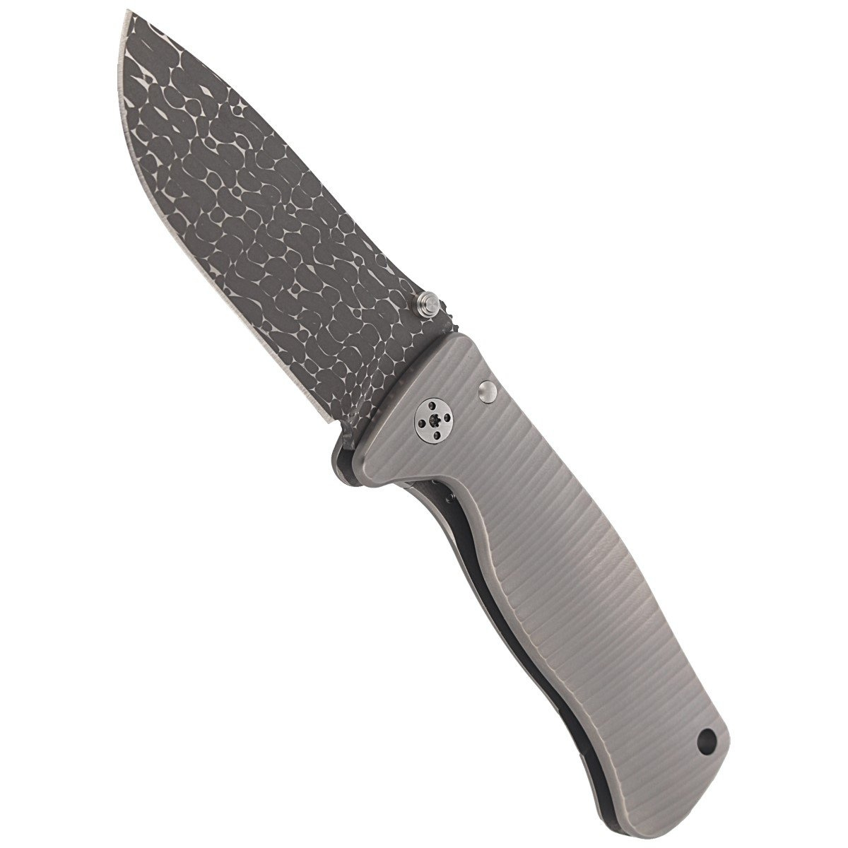 Product name: SR2 Classic Titanium Matte Natural Gray, Lizard Damascus Chad Nichols