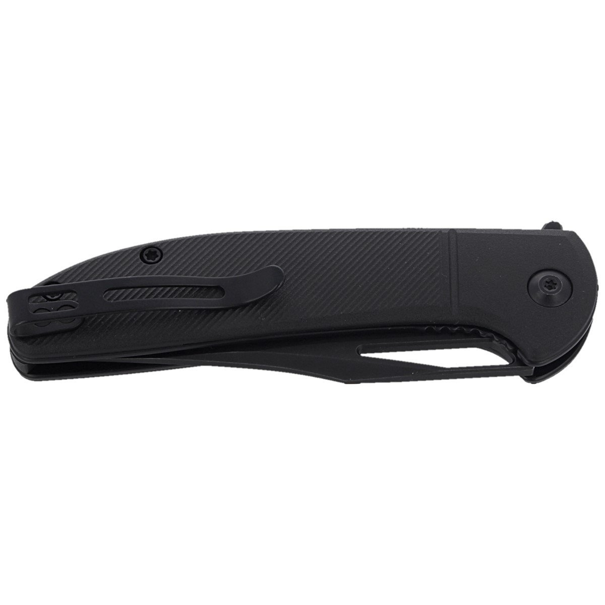 Handle - black FRN (Fiber-glass Reinforced Nylon) grips. The liners are screwed to steel liners. In practice, this means many years of work without weakening the structure. A two-position, left- and right-handed deep carry clip allows you to carry the knife in tip-up position. Above the clip is a lanyard hole, a hole for attaching a safety or decorative cord.