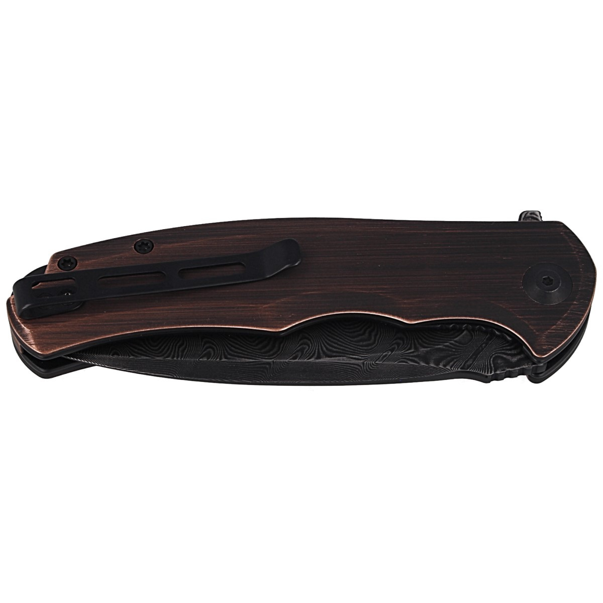 Praxis Black Copper, Black Damascus an excellent EDC with a drop point head made of damascus stainless steel. It opens with a flipper, so it can be easily used by left and right handed people. Small thickness of the blade in combination with high, concave grind gives us cutting properties almost on the level of a razor. The blade was finished with "satin" method. The blade is locked with a proven and popular liner lock.