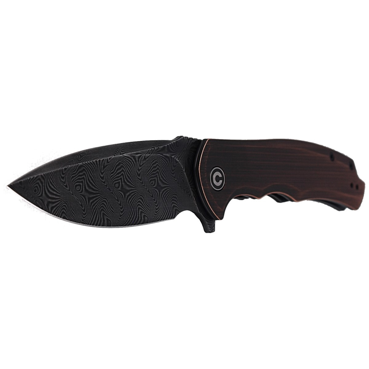 - Praxis Black Copper, Black Damascus knife with a damascus steel drop point blade. Manufactured by CIVIVI Knife, WE Knife's own brand producing knives of the highest quality!
