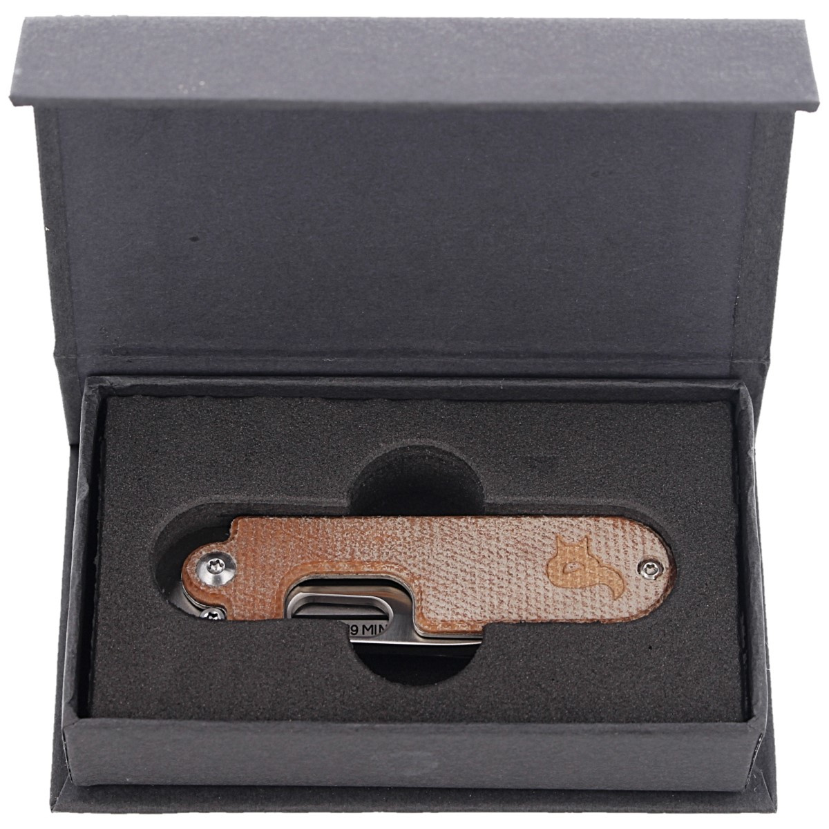 Handle - asymmetrical: made of stainless steel, which is the base of the non-locking mechanism and waterproof natural micarta in brown color, with a slightly rough surface. Open-backed design for easy cleaning and maintenance. A cutout in one of the liners facilitates right hand access to the oval opening to open the blade. Right-handed clip allows the knife to be carried in tip-up position.