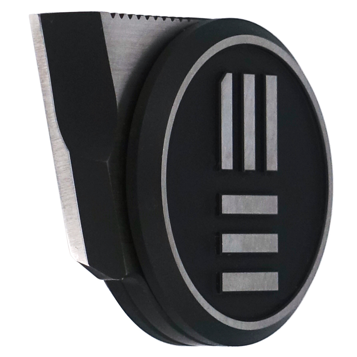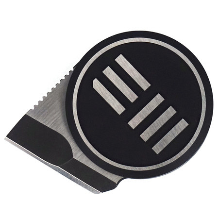 The small blade is made of Bohler M390 steel, currently one of the best tool steels in the world. The blade is finished with Black Stone Washed finish which masks minor scratches caused by use. The smooth Plain blade with chisel profile has a flat grind, which provides strength, excellent cutting-edge geometry and extreme cutting performance. On the back you will find perfectly made "jimping", notches on which you can put your finger to improve grip and control over the knife during use.