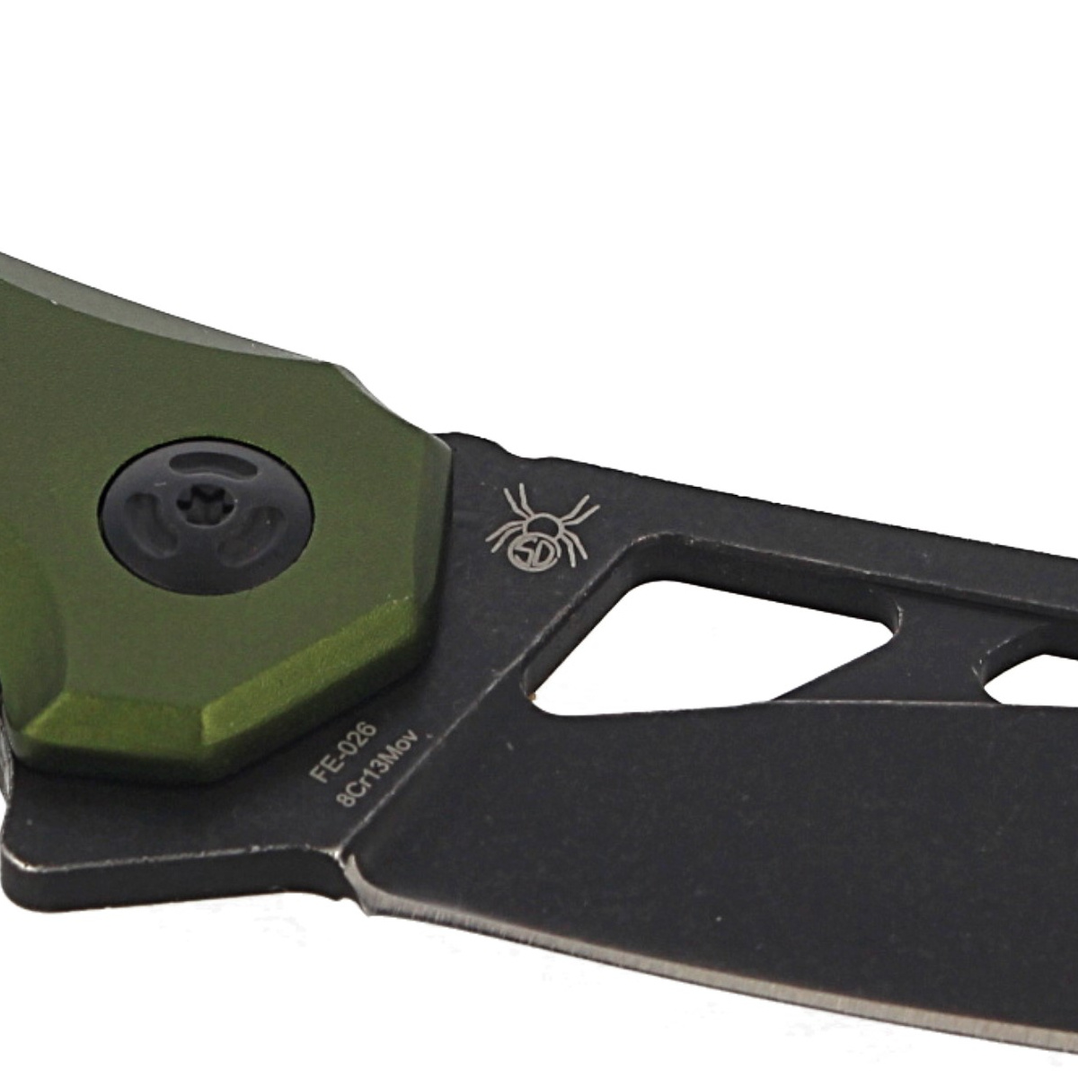 - Atrax Green Aluminum, compact EDC folding knife, design by Denis Simonutti. This knife by the Italian designer combines hard to beat value for money and functionality. Equipped with Liner Lock. Black Stonewash blade.