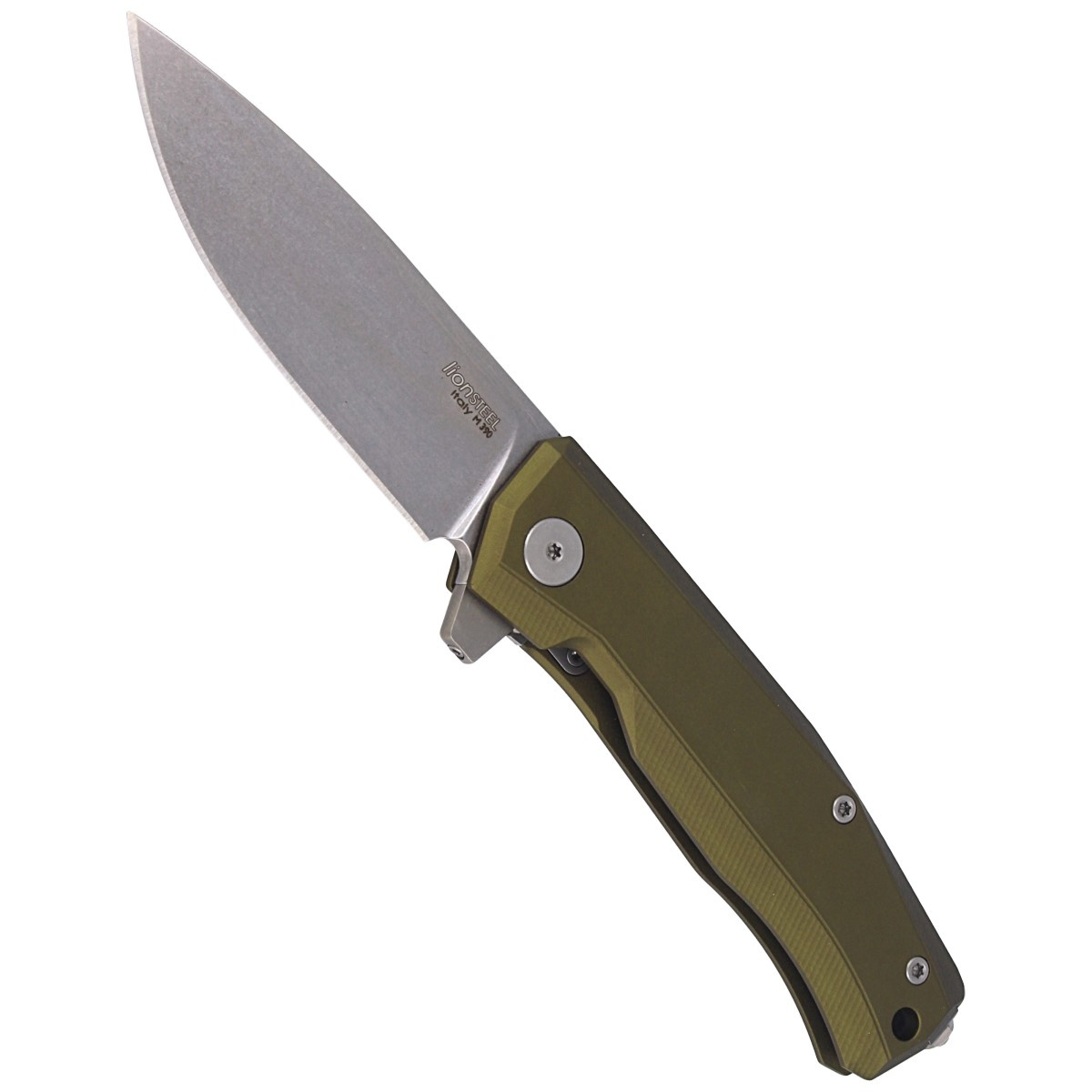 Myto Green Aluminum, Stone Washed high-tech Hi-Tech folder with durable frame-lock. An exceptional E.D.C. knife by the Italian LionSteel manufactory. Features a M390 powder steel blade, "ReF" fin on the underside of the blade, Double Crown ball bearing system and titanium clip. Torx T6, Torx 8 adjustment wrench included.