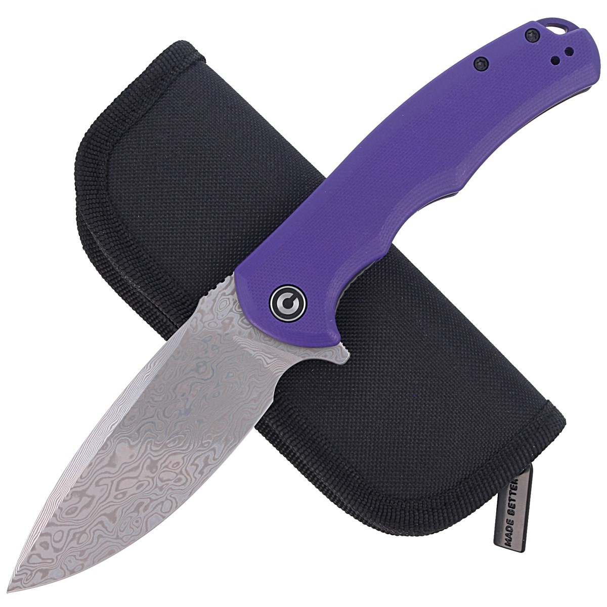 Praxis Purple G10, Damascus, a folder at an amazing price. Civivi, which works well as a tactical knife and E.D.C. Easy to carry, almost no feel in your pocket, and when you need it you have a 95mm blade at your disposal. Bestseller!