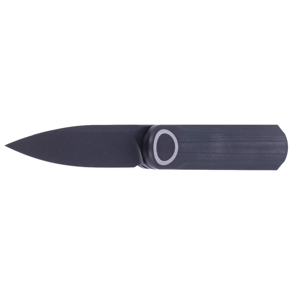 Handle - monolithic, made of a single piece of black G10, milled with CNC 3D machine tools. This provides unbelievable strength, but requires the highest skills and precision in production. The pivot axis is decorated with a stylized WE brand logo. Right-side, one-position titanium deep carry clip allows you to carry the knife discreetly in your pocket in tip-up position.