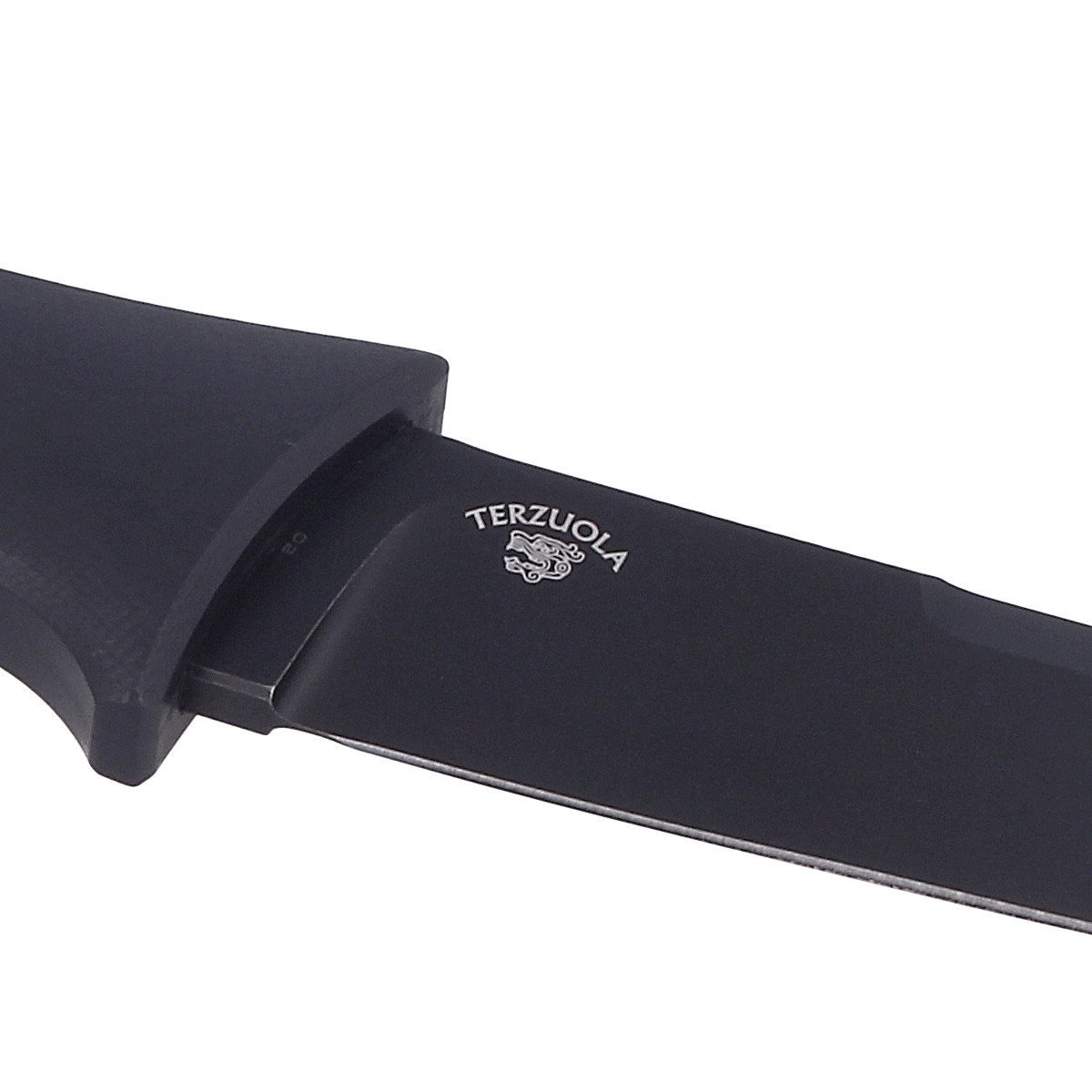 Tamashii Black G10, Black Stonewashed design by a true legend of world knifemaking, Bob Terzuoli. A large, powerful fixed-blade knife of full tang construction with a Japanese-inspired blade that provides optimal cutting edge geometry, the Straight Back profile offers from extreme cutting power to scalpel-like precision. An exceptional E.D.C. knife awarded the prestigious Best In Show Factory knife 2021 and Best Factory Tactical knife 2021 awards at the Blade Show.