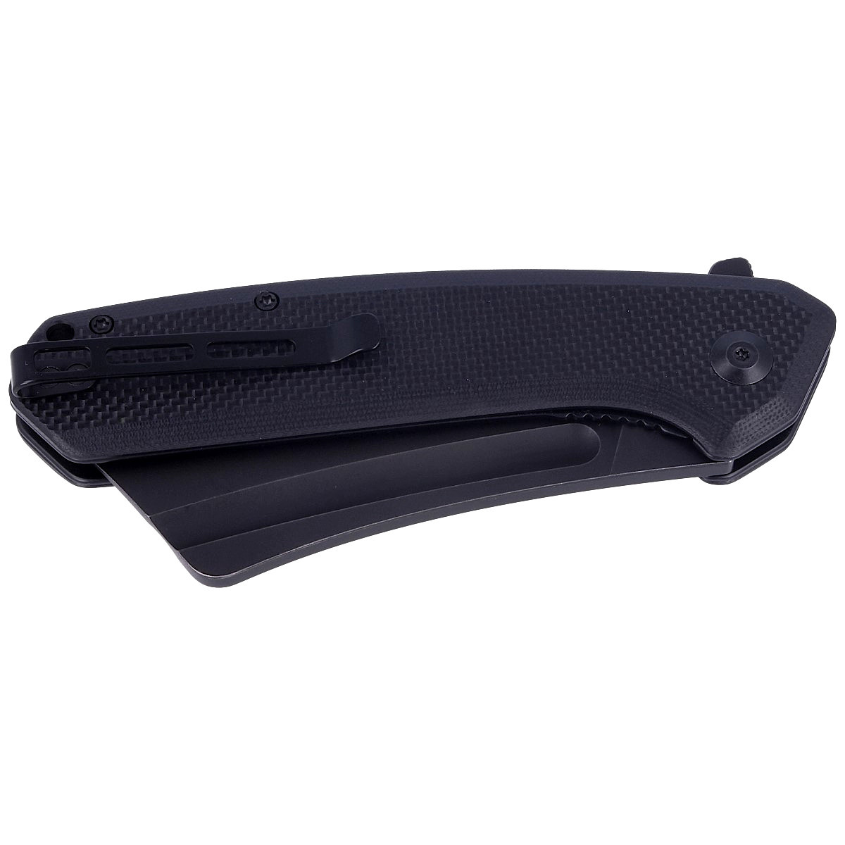 Bullmastiff Black Coarse G10, Black Stonewashed similar in design to the Mastodon folder, with a traditional cleaver blade. A blade shape that has recently become increasingly popular with a long, straight cutting edge and a pointed tip that is suitable for piercing and precision work. Bestseller!