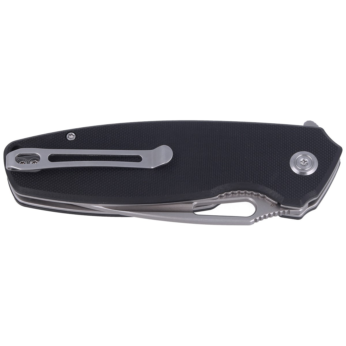 Tityus, Black G10, Bead Blasted D2 strong EDC knife. Wide drop point blade in D2 steel, quick flipper flipper for opening and G10 handle. Excellent value for money! Bestseller!
