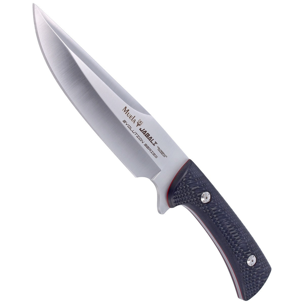 - Jabali Black Micarta, Satin fixed blade hunting knife from Muela with Drop Point profile. High quality, meticulous detailing, a knife for collectors, hunting enthusiasts. Micarta handle, non-slip. Leather sheath.