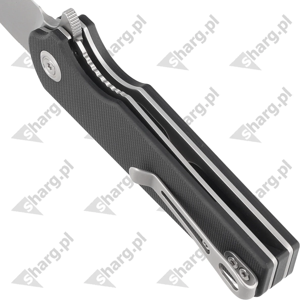 Handle - black G10 (pressure-pressed fiberglass with synthetic resin) facings, textured to improve grip confidence, bolted to the knife's steel frame. Rugged G10 backspacer. The simple, solid design gives you the assurance of years of use. Deep finger undercut (fore finger groove) improves grip confidence. A two-position (right/left) steel deep carry clip allows you to carry the knife discreetly in your pocket in the tip-up (blade tip up) position. Above the clip a lanyard hole, a hole for threading a safety or decorative cord.