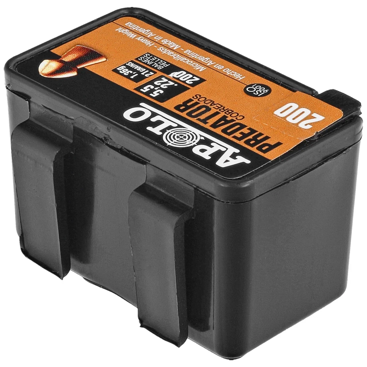 Predator Copper .22 copper-plated over-caliber pellets in 5.5 mm caliber with excellent aerodynamics, energy retention, and high impact force. Designed for long-distance shooting. The increased weight and optimal center of gravity provide a flat, stable trajectory, even in windy. The weight of the pellets was selected to fit powerful air rifles. Made from a low-lead alloy. Convenient packaging of 200 pcs, with the option to attach it to a belt or gear.