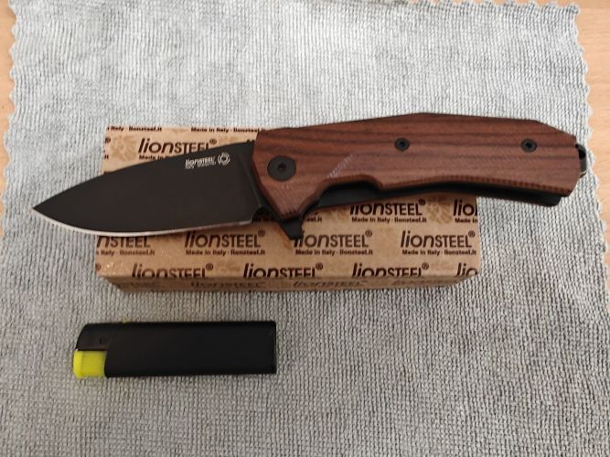 LionSteel KUR Knife Santos Wood, Black PVD/Stonewashed Sleipner by Molletta (KUR BST)