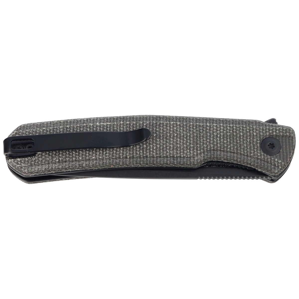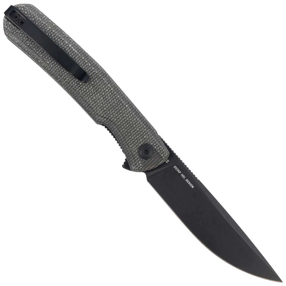 Scitus Dark Green Canvas Micarta, Black Stonewashed undersized, lightweight E.D.C. knife. The result of cooperation between Polish knifemaker Ostap Hel and Sencut. Made of good materials at an extremely attractive price, the folder features a blade of proven D2 steel. A bestseller!