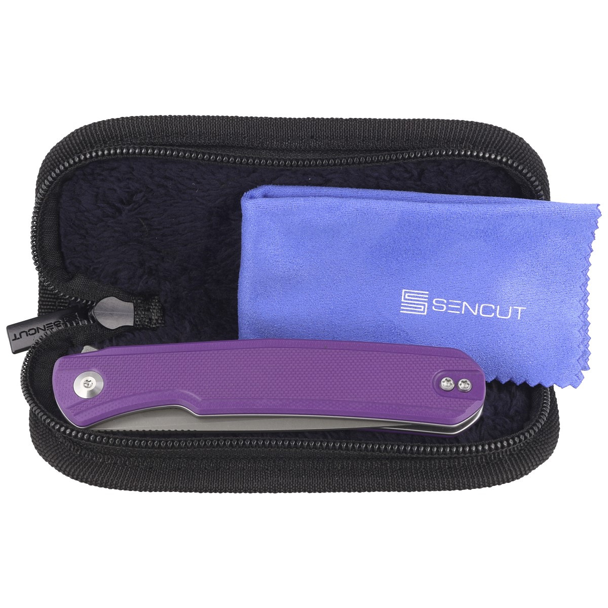 - Scitus Purple G10, Gray Stonewashed undersized, lightweight E.D.C. knife. The result of cooperation between Polish knifemaker Ostap Hel and Sencut. Made of good materials at an extremely attractive price, the folder has a blade of D2 steel. A bestseller!