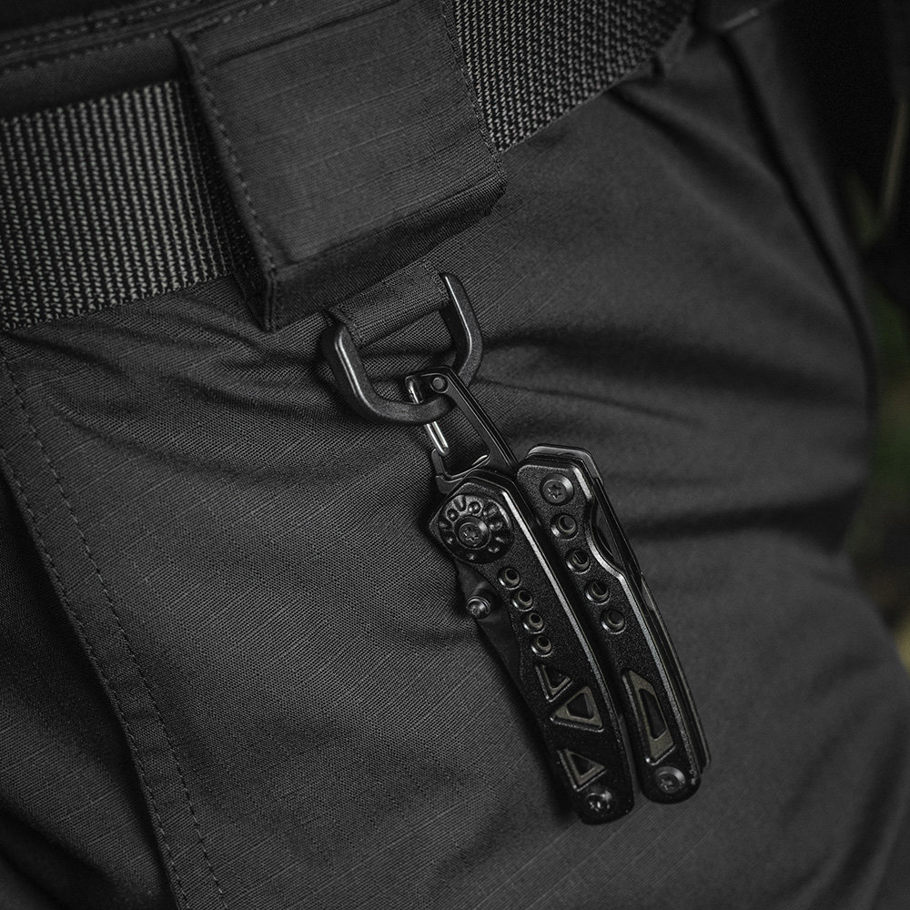 Handle - made of stainless steel. Ergonomically shaped for a better grip, with a series of holes designed to relieve the overall weight. The military green OD finish gives a tactical look. In the rear part, a snap hook for hanging the tool directly on your equipment, so that you always have it at hand.