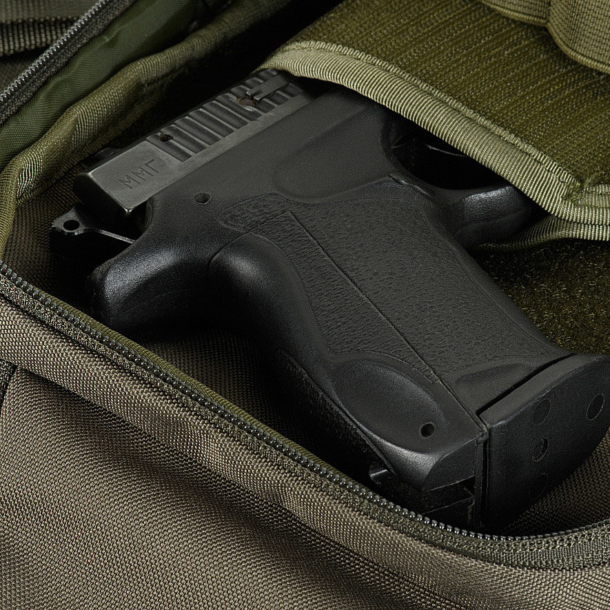 One of the main advantages of the M-Tac Shoulder Bag is the universal holster that allows for a fit to most handgun models. The holster is secured with velcro, ensuring safe and stable carrying of the weapon. The bag also has special snaps that allow for quick access to the gun in situations where time is of the essence.