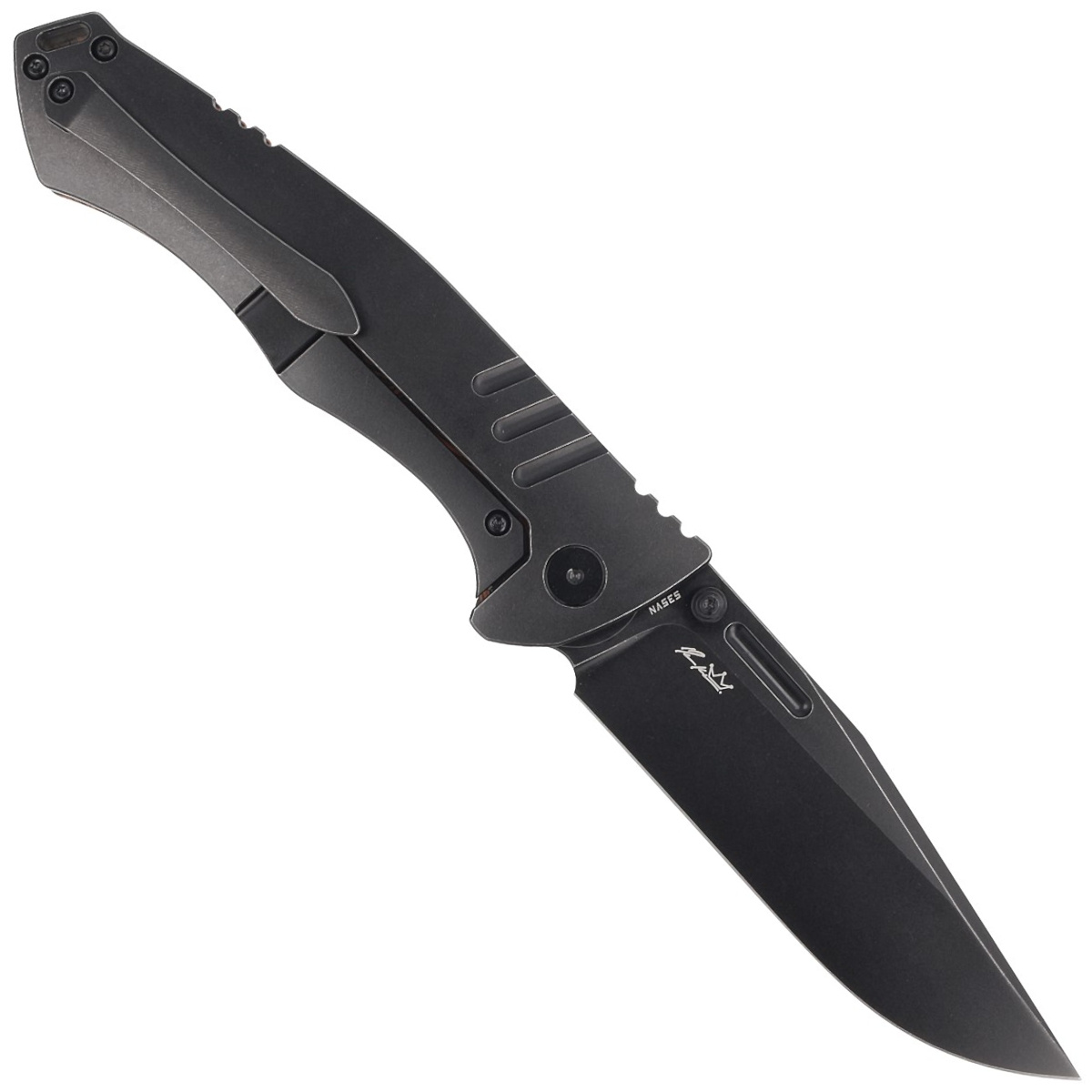 Blade - wide, Clip Point type with a practical, scratch-masking Black Stonewashed finish. The generous belly extends the length of the cutting edge relative to the length of the blade converging toward the needle-sharp tip of the knife. The thickness of the blade provides high strength while the high, flat grind gives excellent cutting edge geometry and extreme cutting performance. Ceramic ball bearings support the opening of the blade with a quick flipper (index-finger flipper) when opened acting as a stinger. We can also open the knife using a double-sided stud in the wedge (double thumb stud). The whole thing is locked with a proven and popular frame lock with a steel insert that prevents the lock face from rubbing off.