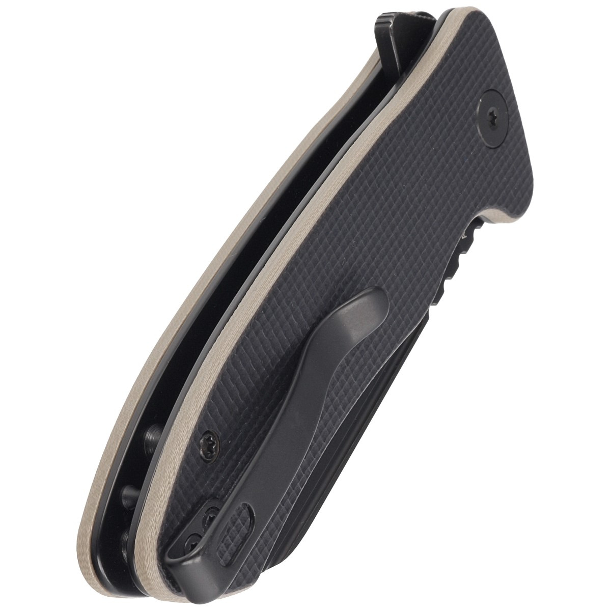 Creon Black/Tan G10, Blackwashed, compact EDC folder, combining robustness with practicality. Blade made of Japanese stainless steel AUS-10, known for its excellent corrosion resistance and ease of sharpening. The handle is made of durable G10 composite, ensuring a firm grip even in difficult conditions. The intuitive button lock mechanism allows for safe and easy one-handed operation. Thanks to its strong construction and low weight, Creon is ideal for everyday use, offering reliability and functionality in any situation.