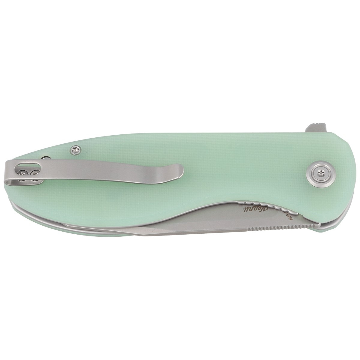 Master Chief Jade G10, Bead Blast handy, powerful EDC knife. Blade reverse tanto made of AUS-10 stainless steel, fast Flipper flipper for opening and G10 handle. The perfect knife for everyday jobs where it will never fail! Bestseller!