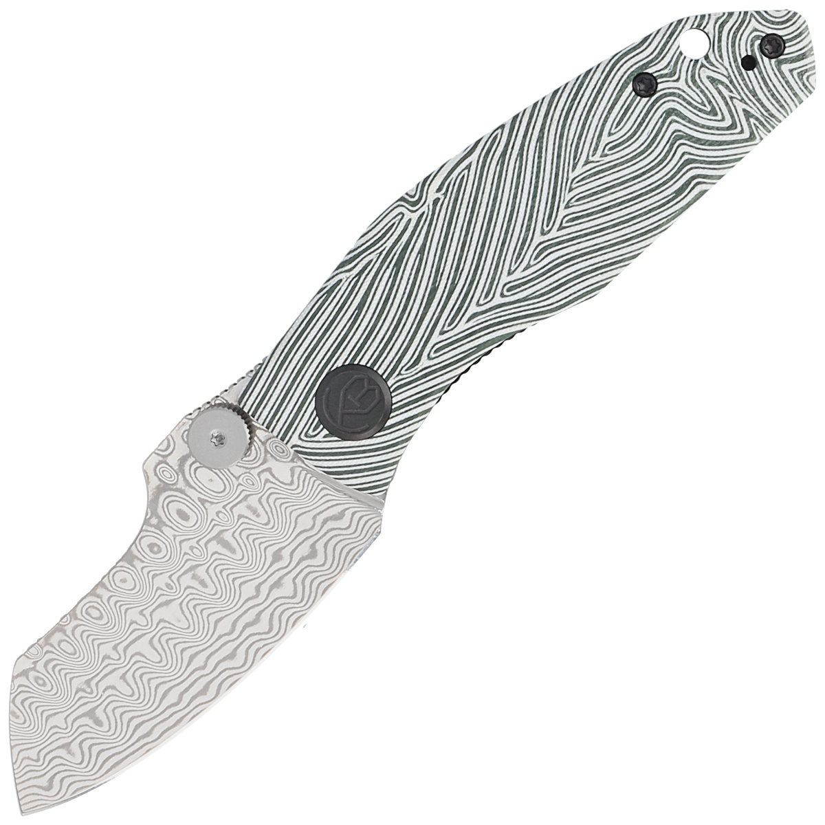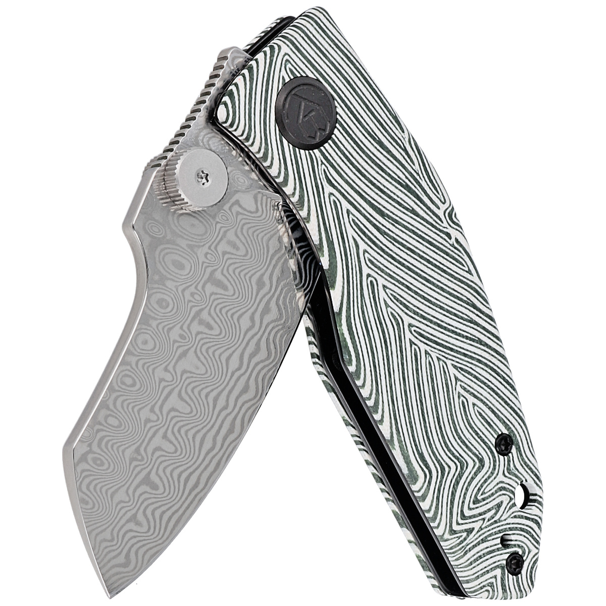 Kubey Knife Monsterdog White/Green G10, Damascus by Dmitry Osarenko (KU337E)